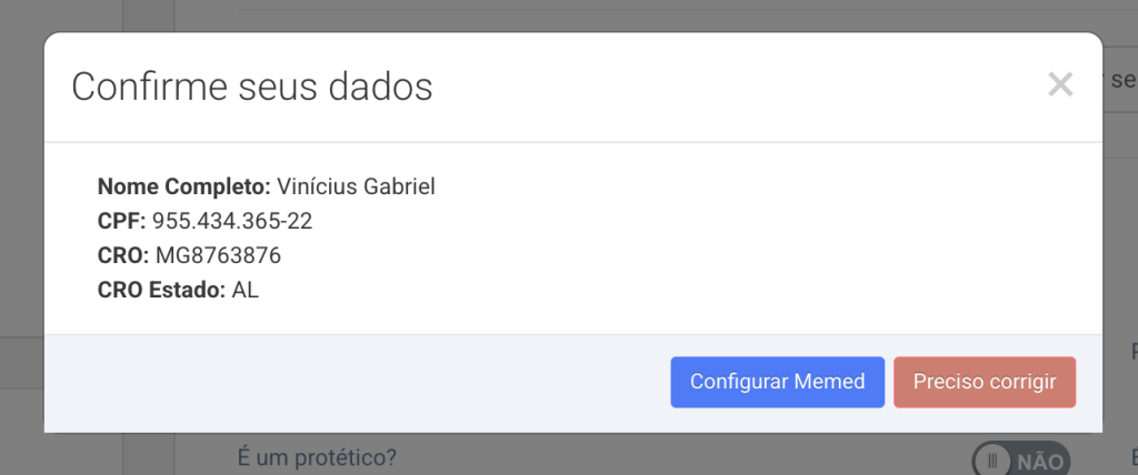 Confirme os dados antes de clicar em “Configurar Memed”.