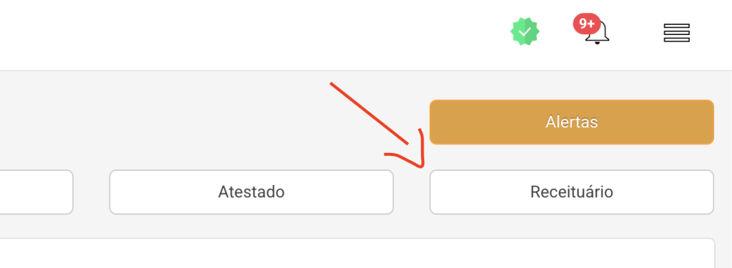 Entre no prontuário do paciente que deseja emitir a receita ou pedir um exame. Clique sobre o botão “Receituário”. Esse botão está localizado no canto superior direito do prontuário.