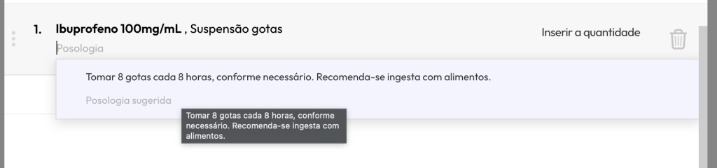 Escolha a Posologia, ou seja, maneira de usar o medicamento.