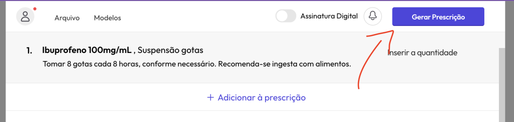 Essa opção agiliza o processo e permite que o paciente receba a receita de forma totalmente online, sem a necessidade de impressão.