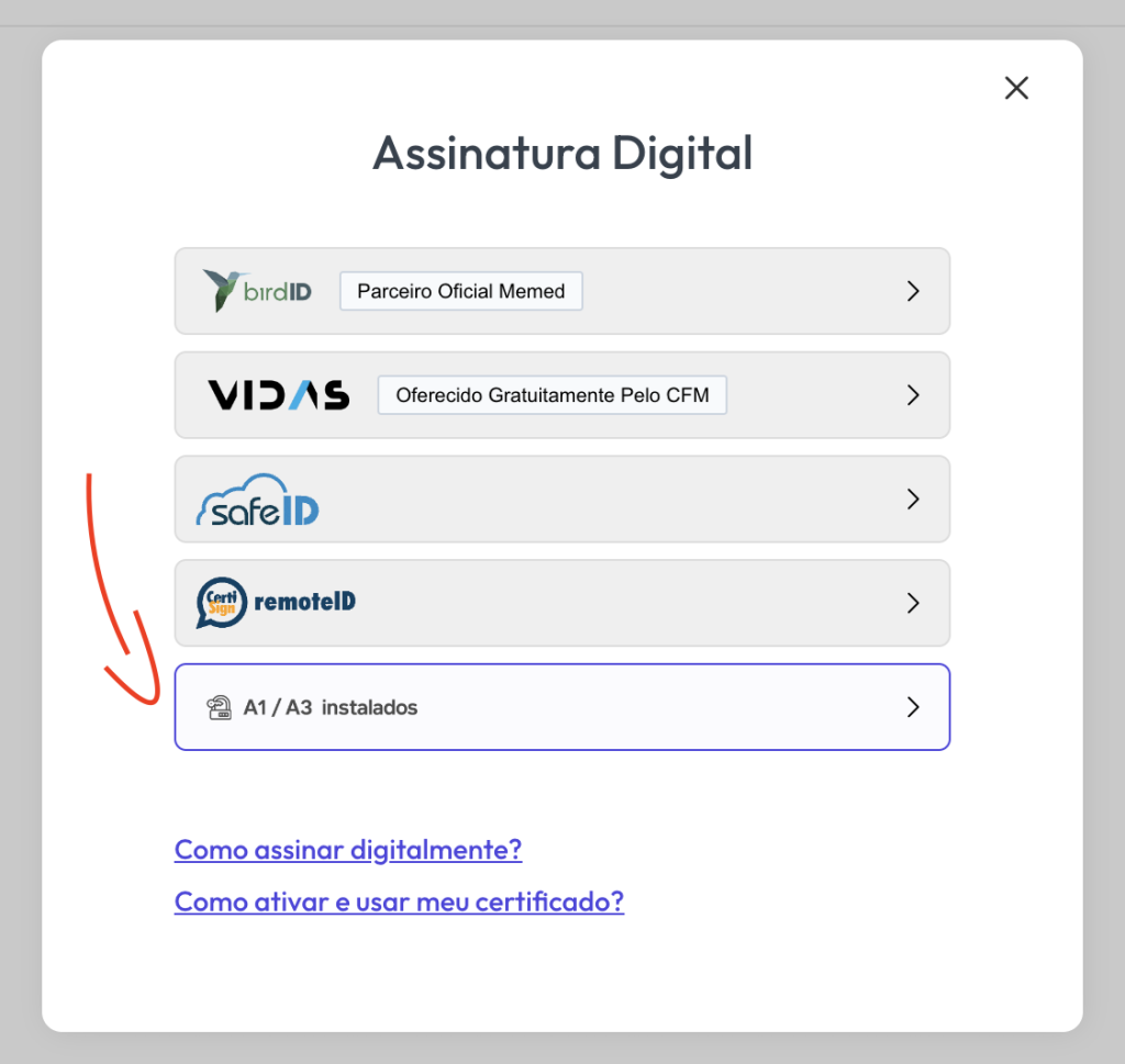 Para utilizar a receita digital, é necessário ter uma assinatura A1 cadastrada. No Guia Odonto, basta selecionar a opção “Assinatura Digital” para adicionar o seu certificado e validar suas emissões pela Memed.